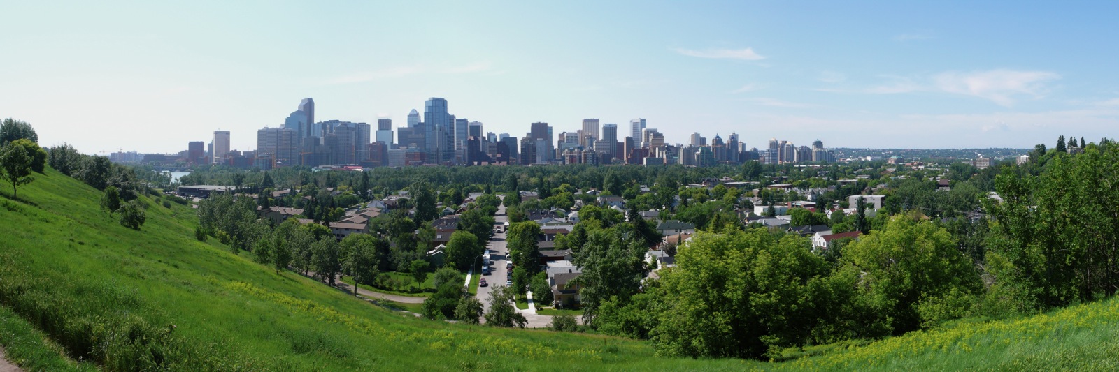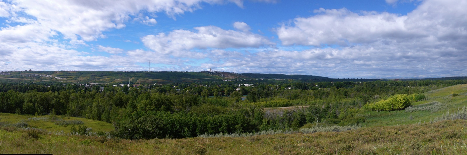Calgary’s Best Hikes and Walks. I do this as exercise and for getting to know the parks and neighborhoods in my city a little better. Even bought a small camera to bring with me. The following are a few panoramas joined together using the program HP Photosmart Stitch from snapshots taken by simply panning a hand-held camera around.
