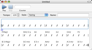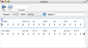 The cut, copy, and paste commands in the chord editor behave very much like those in any other applications. They are invoked by Edit > Cut (Command-X), Edit > Copy (Command-C), and Edit > Paste (Command-V), respectively. The cut, copy, and paste commands that operate on bars will only work when one or more bars are selected. When a chord entry text box is selected, cut, copy, and paste will work on the selected characters of the chord in that text box.