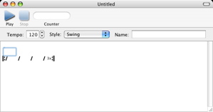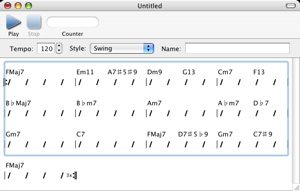 Now click on the play button to generate and play the accompaniment. By default MyJazzBand uses CoreMIDI's internal DLS synthesizer with appropriate patches already selected. To use external MIDI devices, or to change the patches used, read about changing settings in the preferences panel.
