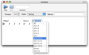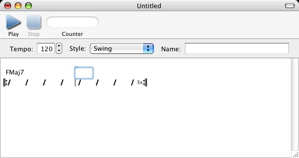 MyJazzBand is very simple to use: launch it, type in your chords (navigating using the arrow keys), and click on the play button to generate and play the song.
