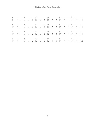 For example, to print six bars per row, first resize the song document window to display six bars per row, as shown.