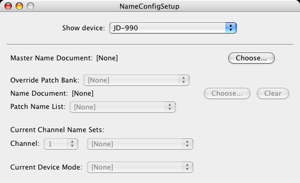 The Name Config Setup panel in MyJazzBand lets you set this name config property for your MIDI devices. Open it by choosing MIDI > Name Config Setup....