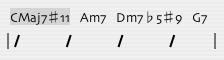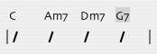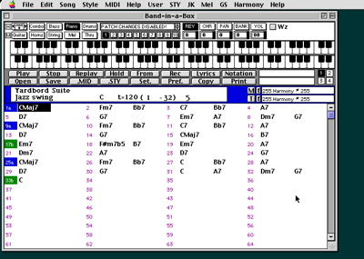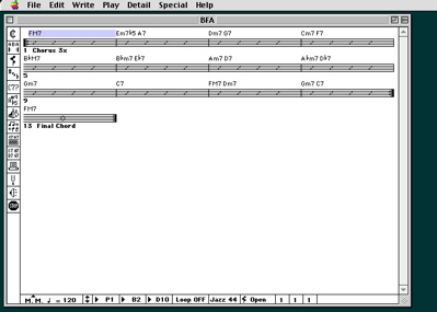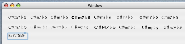 How should one determine the layout for displaying a chord sequence in a window? Both BiaB and MiBAC fix the width of the bars. Since bars naturally vary in widths due to differences in the number of chords contained in them and the widths of the chord names, why cant a chord editor be more like a word processor and display them in proportional spacing? Better yet, why cant it be more like a typesetting system, where spacing is optimized for entire paragraphs? Well, why not?