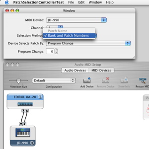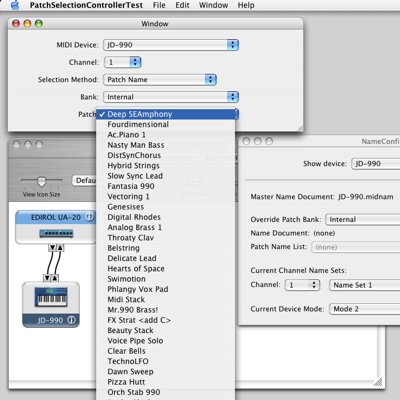 Using NameConfigSetup, a MIDI name document is associated the JD-990. Now the Patch Name selection method automatically becomes available.