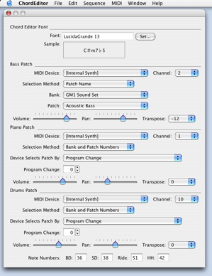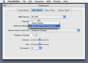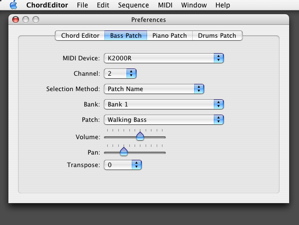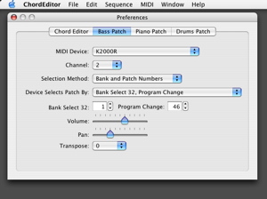 Heres the current look of my Preference Panel. Its simply yesterdays layout rearranged in a NSTabview with four tab view items. The Piano Patch and Drums Patch items are similar to the Bass Patch item and are not shown.