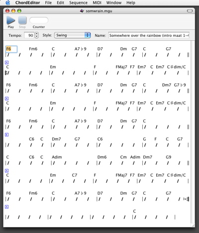 A chorus is specified by its beginning and ending bars, and the number of times its repeated. A simple application for practicing improvisation (like BiaB or MiBAC Jazz) supports only one chorus per song. I wrote some code today for displaying and editing this information in my chord editor.
