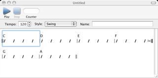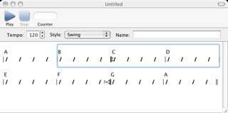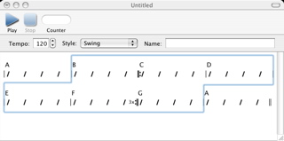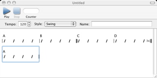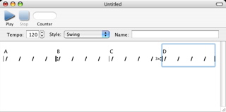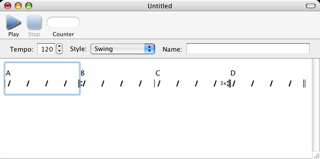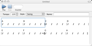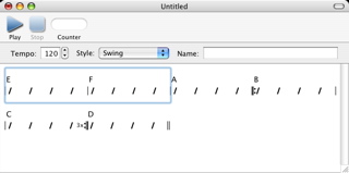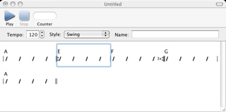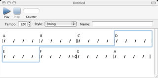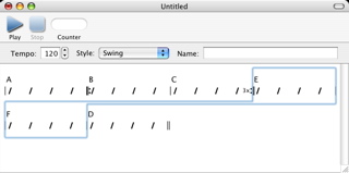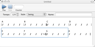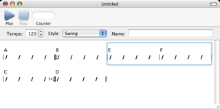 Back when I was thinking about how the chord editor should work, I made a design decision regarding how bars should be selected and how the selections should appear in the GUI. Editing bars are really very much like editing characters, in that sometimes a sequence of them are selected but yet at other times wed like to place the cursor between two consecutive bars. On the other hand, visually they look more like the cells in a spreadsheet (albeit in one-dimension). Because of this, and to avoid the confusion to the user of switching between a selection and a cursor, I decided against implementing a cursor that goes between bars and always have a selection that contains at least one bar. This makes the programming a little more complicated because special cases need to be handled separately. Consider a document containing four bars, all of them selected.
