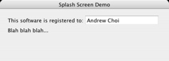 My demo program also shows how to display a splash screen. This is useful for displaying the user name for a registered copy of the application to discourage people from giving away their registration codes.