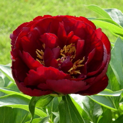 A close up. Great semi-double form, dark red, slightly fragrant!