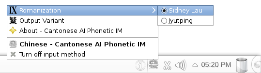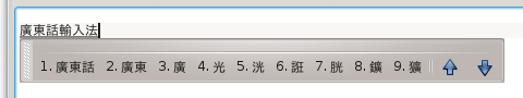 Now you’re ready to use CAP! When a GUI element that supports text input (such as a text box) is in focus, you can hit the keyboard shortcut to enable the input method (this shortcut is customizable under the General tab). If you have added more than one input method in IBus Preferences, you can hit the keyboard shortcut to cycle through them (also customizable under the General tab). When CAP is active, the IBus icon (mini keyboard) will switch to the ibus-cap icon (the character 『粵』):