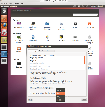 On some distros such as Ubuntu, once IBus is installed, you need to select IBus as the “input method engine”. Do this by clicking on System Settings (wrench and cogwheel icon), double-clicking Language Support and in the “Keyboard input method system:” popup menu, choosing ibus.
