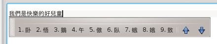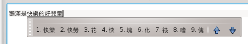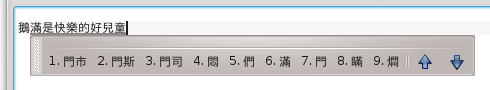 Since the word 『鵝』 is not in the candidate window, we hit Down to look for it, and it appears as the third candidate on that row.